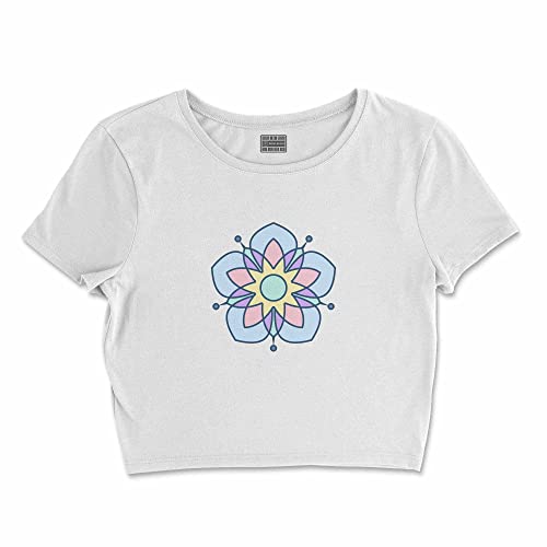 Bona Basics, Digital Bedrucktes, Damen Basic Crop-Top,%100 Baumwolle, Weiß, Lässig, Damen Oberteile, Größe: L