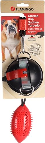 Flamingo Muro Rugby-Spielzeug und Saugnapf mit rotem Seil – 60 cm – Saugnapf mit Clip – kleine Kugeln massieren das Zahnfleisch – hilft bei der Reduzierung von Plaque Report This