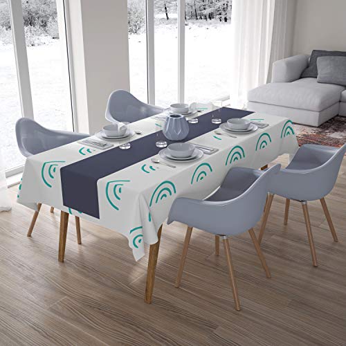 Le Jardin du Lin Küchendekoration, Tischdecke, Türkis, Weiß, 140 x 200 Cm - Entworfen und hergestellt in der Türkei Report This