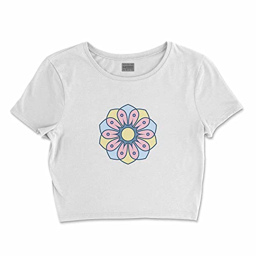 Bona Basics, Digital Bedrucktes, Damen Basic Crop-Top,%100 Baumwolle, Weiß, Lässig, Damen Oberteile, Größe: S