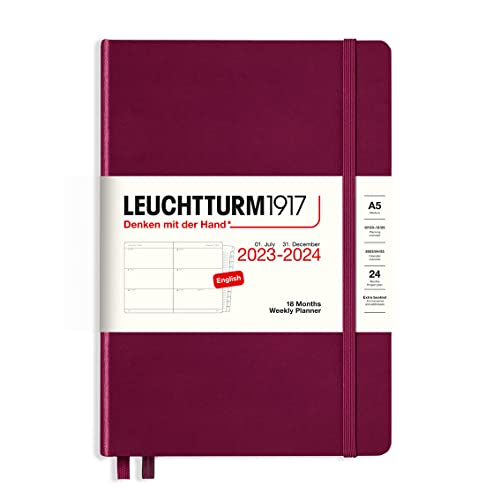 LEUCHTTURM1917 367600 Wochenkalender Medium (A5) 2024, 18 Monate, Port Red, Englisch Report This