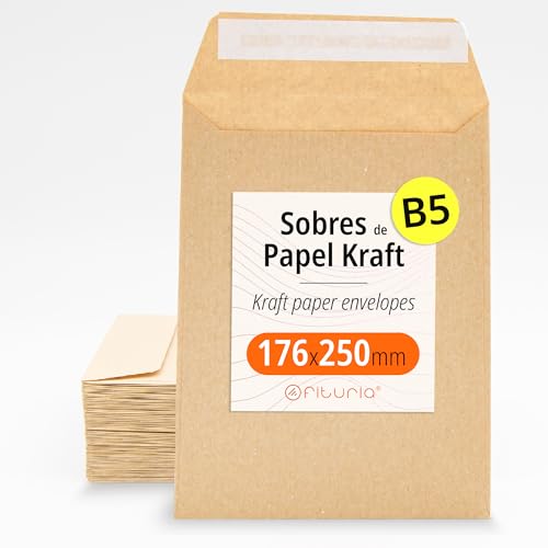 Kraftpapier-Umschläge, Umschläge für Dokumente, Geschenke, Hochzeitseinladungen und Versand, Robuste und Vielseitige Papiertüten für alle Gelegenheiten, Größe B5 - Ofituria (176x250, 200 Stück) Report This