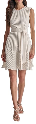 DKNY Women's Sleeveless Jewel Neck Front Dress, Eggshell, Size 42
