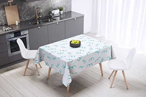 Le Jardin du Lin Küchendekoration, Tischdecke, Türkis, Weiß, 140 x 140 Cm - Entworfen und hergestellt in der Türkei